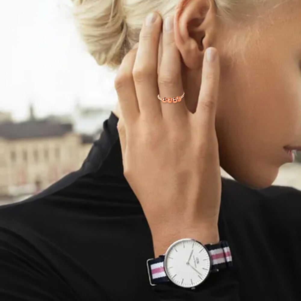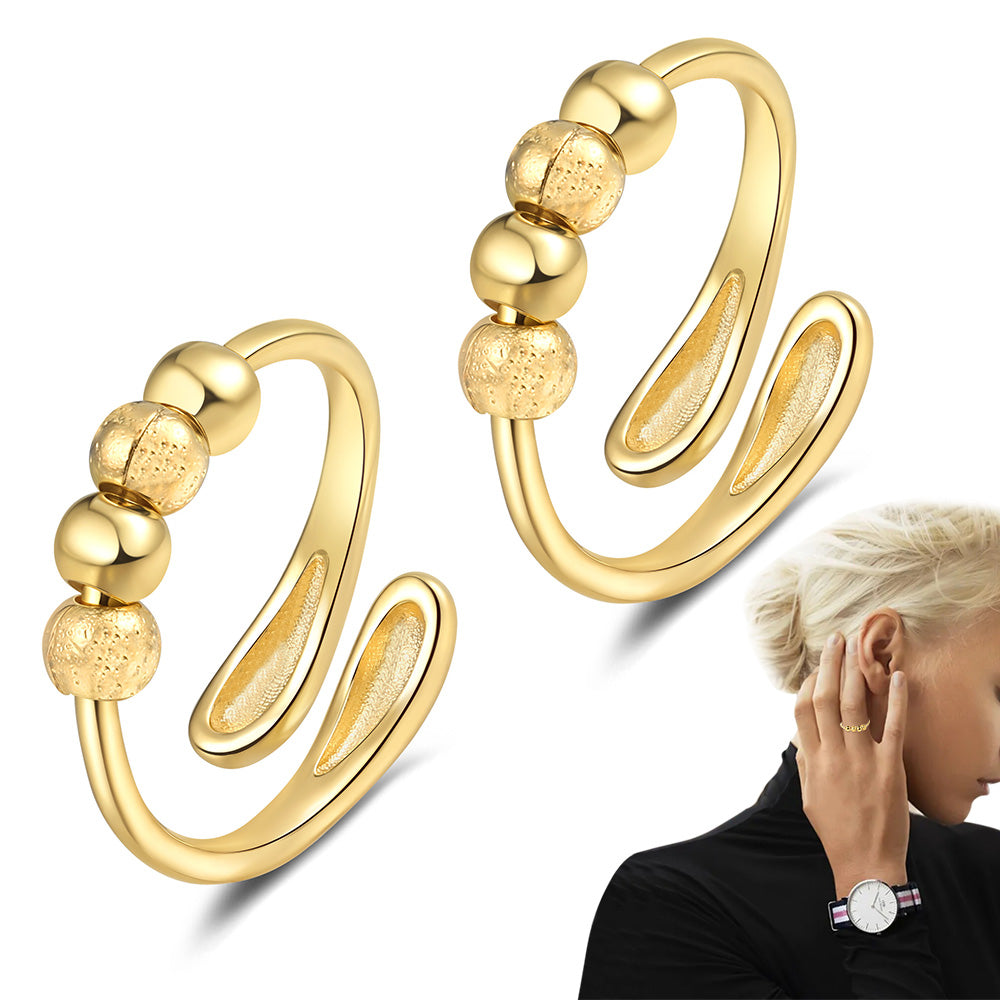 Reduce stress and promote calm with these elegant spinner rings featuring rotating beads and an adjustable open band for a comfortable fit.