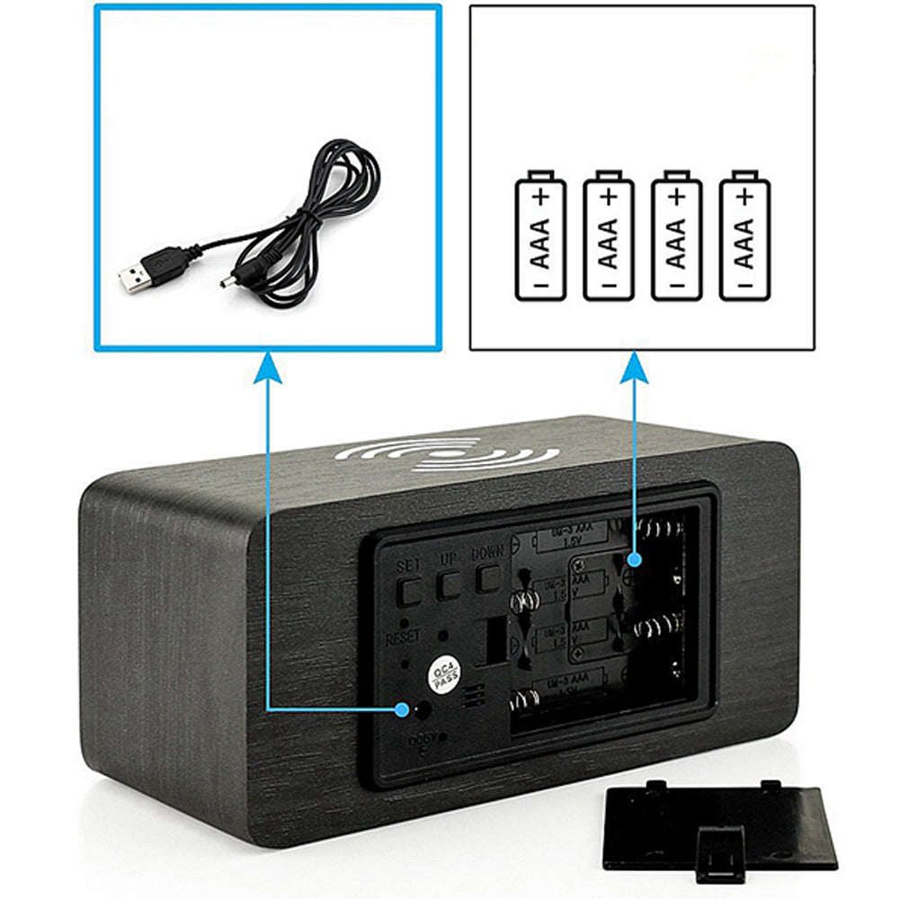 When the alarm clock is plugged in, simply place your phone on top of the product to charge.