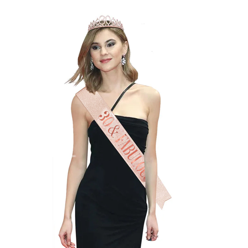 10 PCs Birthday Decoration Set Birthday Gift Tiara Crown and Sash-30th Birthday Decoration