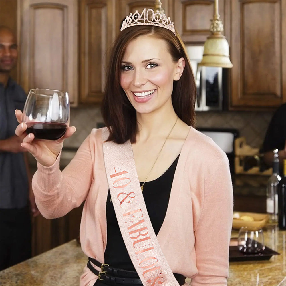10 PCs Birthday Decoration Set Birthday Gift Tiara Crown and Sash-40th Birthday Decoration
