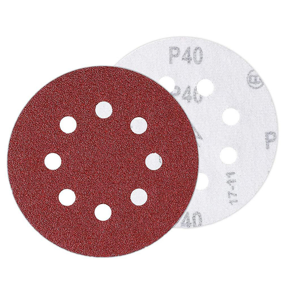 100Pcs 5-Inch 8-Hole Sanding Discs with Hook and Loop Backing for Random Orbital Sander