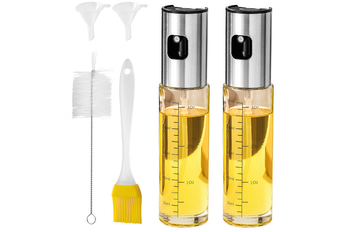 - With 100ml food-grade glass bottles, features fine mist spray, leak-proof design, and includes brushes for effortless cooking, baking, grilling, and calorie-controlled meal prep.