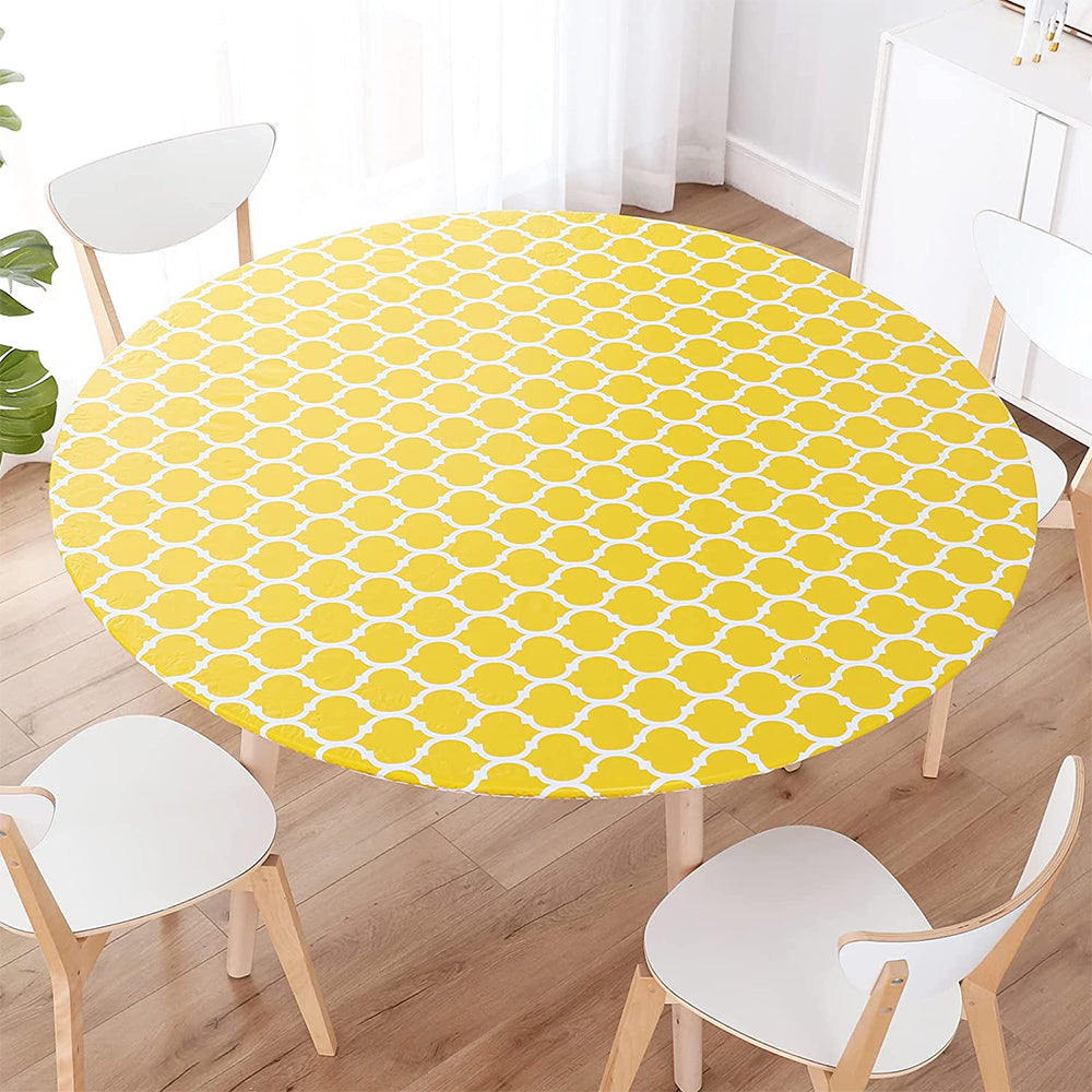 Waterproof Elastic Edge Round PVC Tablecloth for Kitchen-Yellow