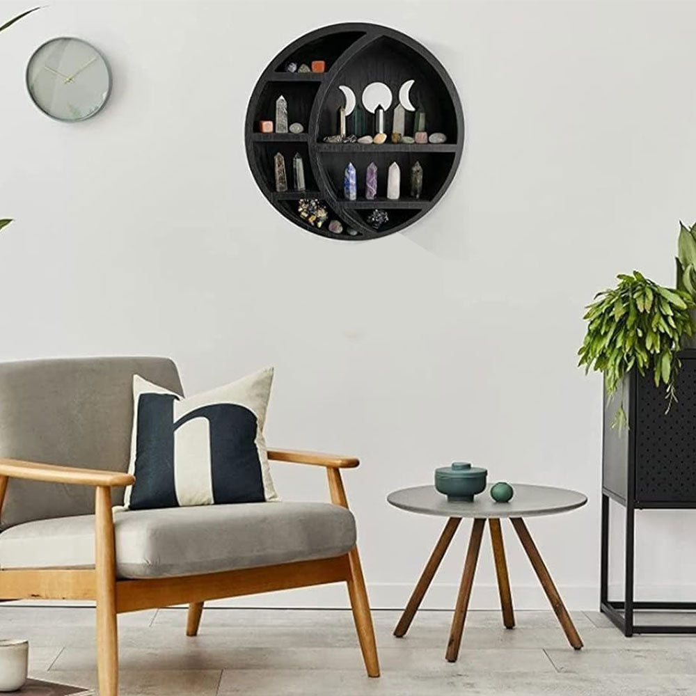 Wooden Shelf Halloween Crystal Display Shelf Decor-Round Moon