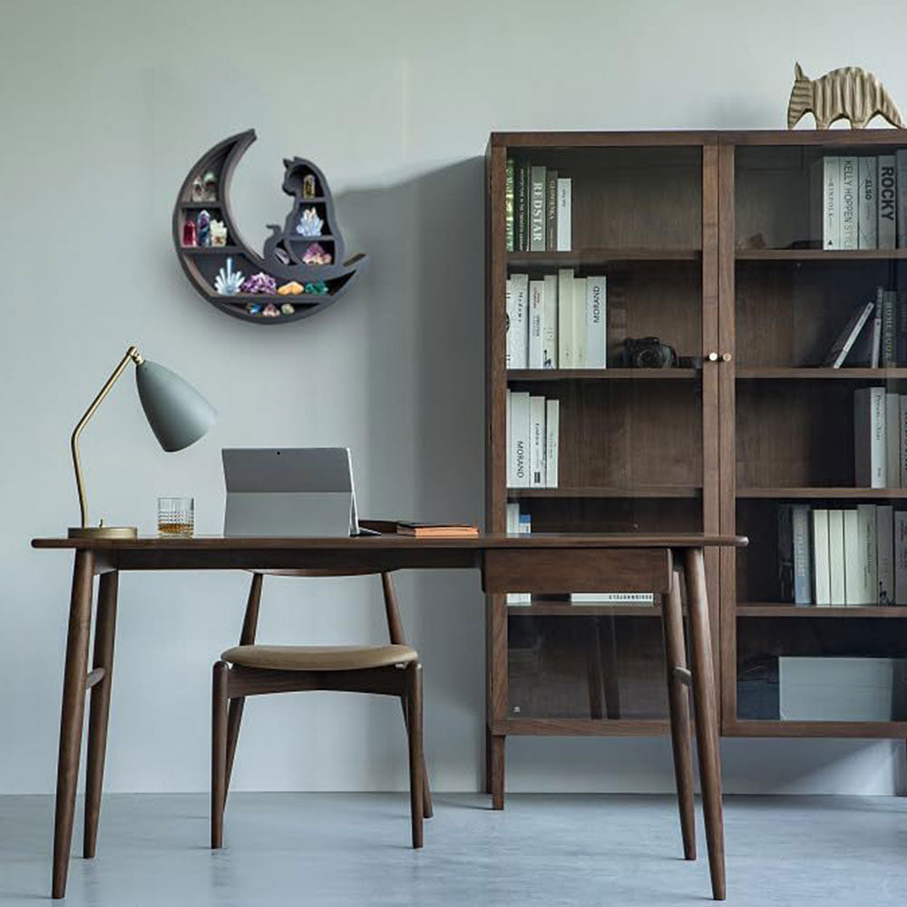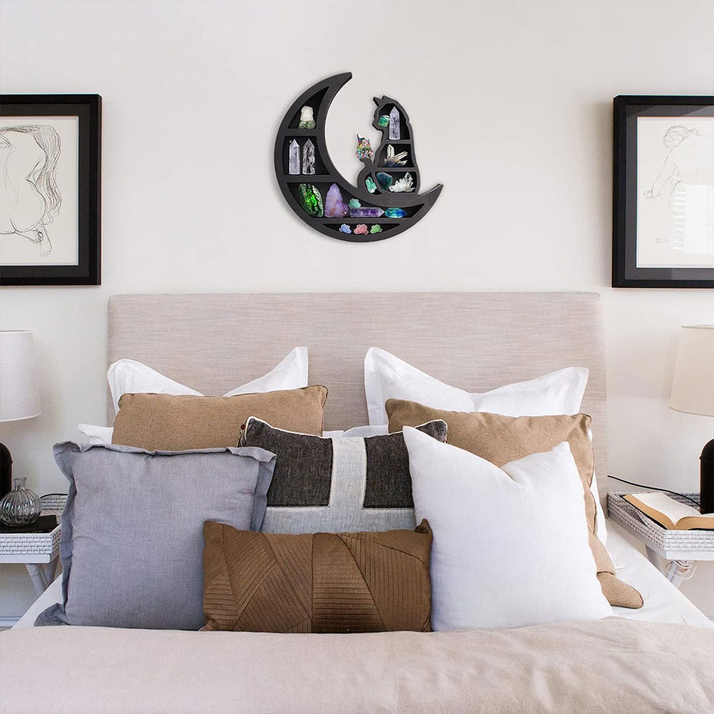 Wooden Shelf Halloween Crystal Display Shelf Decor-Cat in the Moon