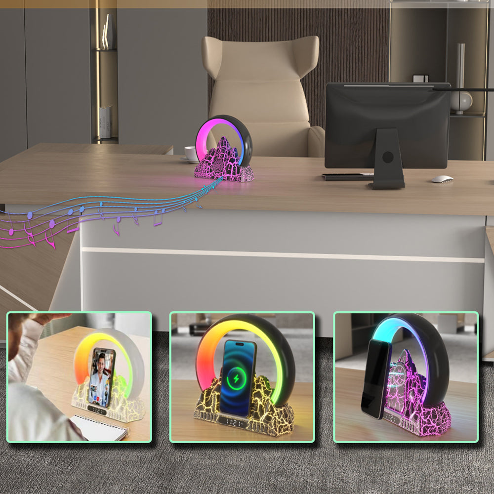 This sunrise alarm clock combines the customized alarm clock with wireless charger, FM radio, night lights, ambient light, Bluetooth speakers and sound machine, and its modern styling is full of unique atmosphere, making it an excellent decoration for any room.