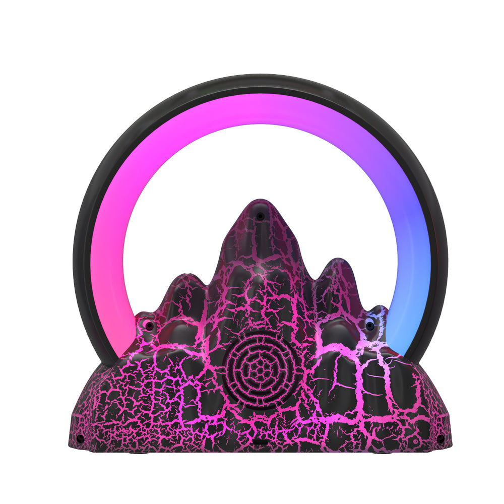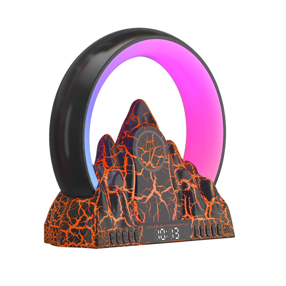 Novel sunrise volcano design, light shones through the mountain cracks, giving a sense of volcanic eruption.