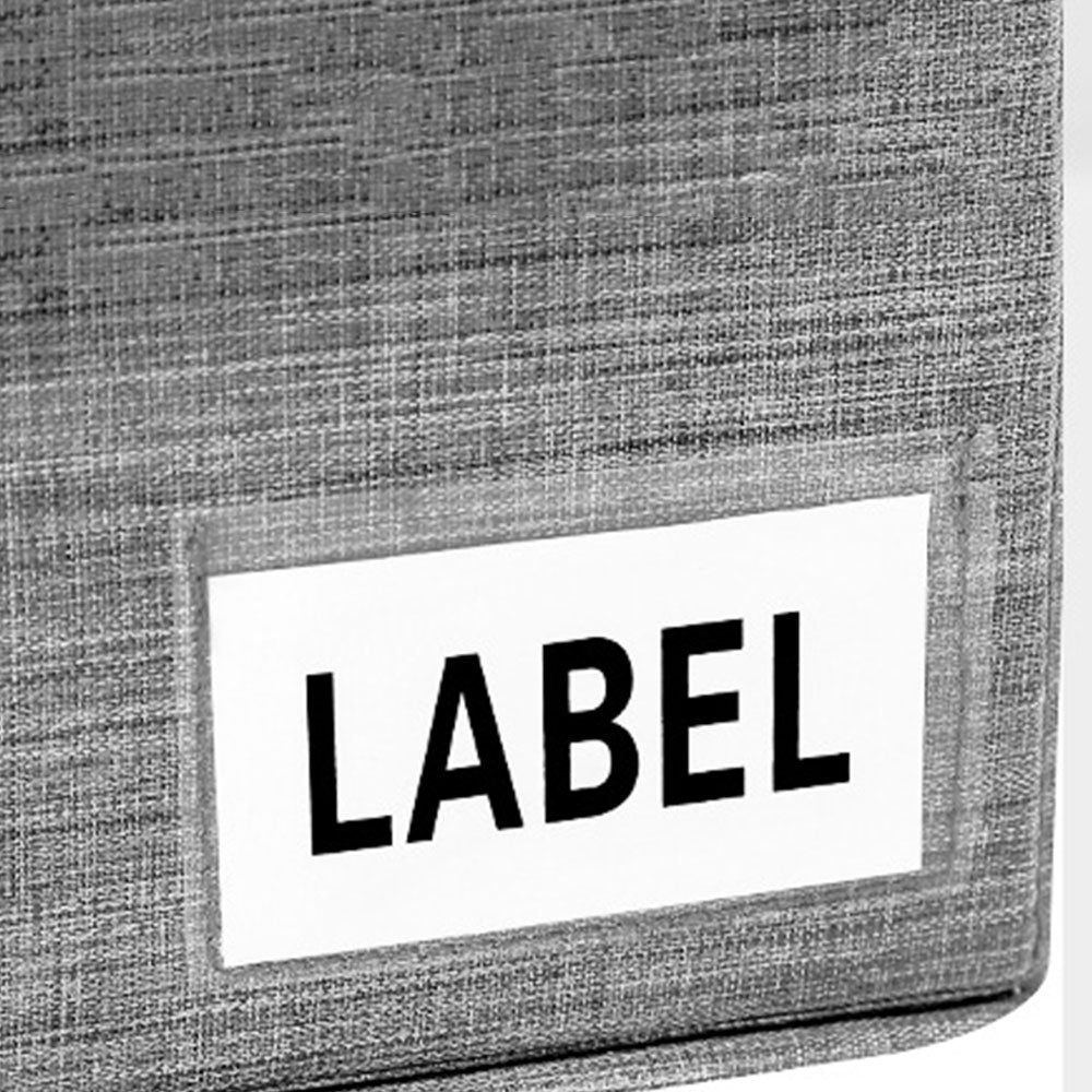 - A label holder on the front and side, along with the included white cards, makes categorizing easier.