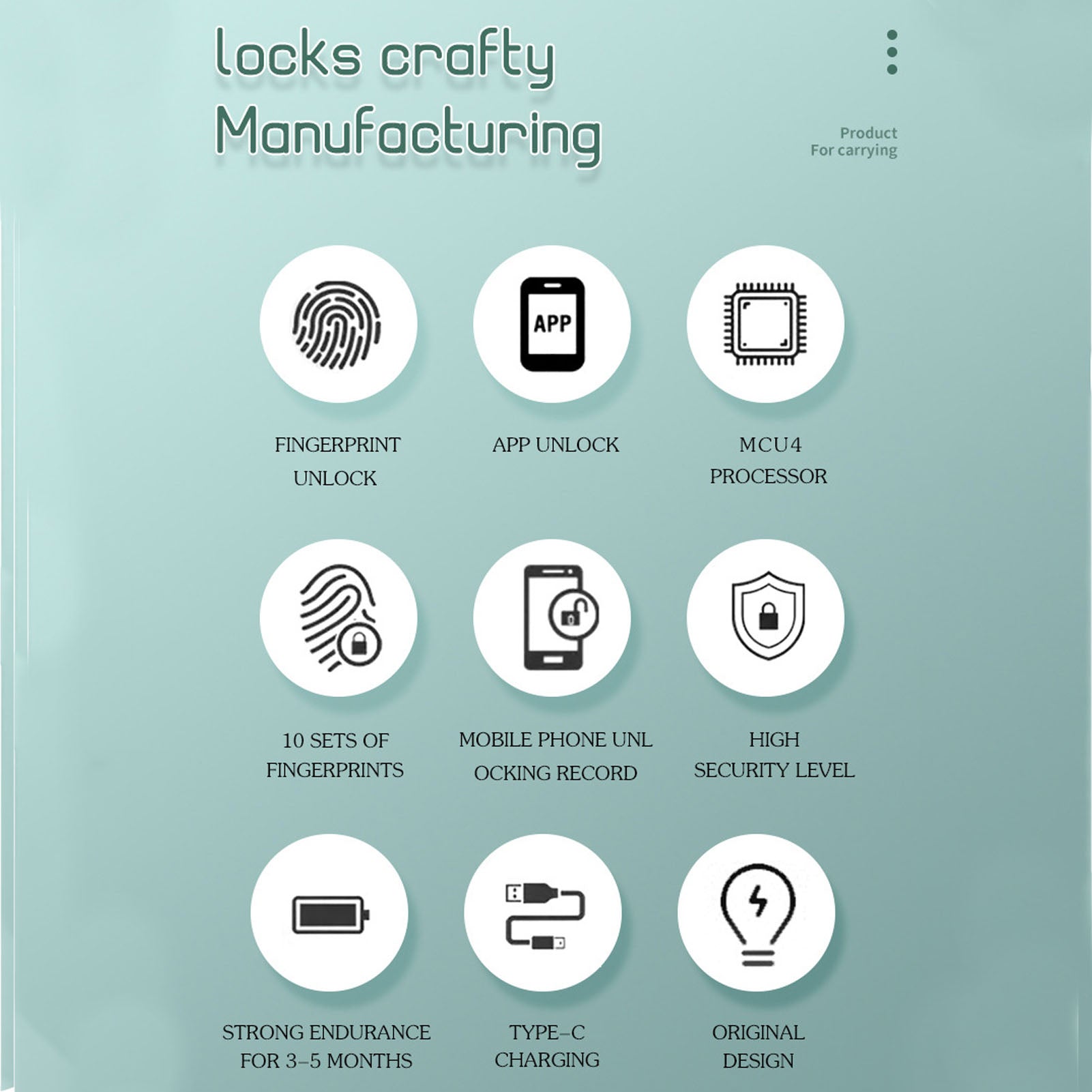 Compact and Reliable: The fingerprint padlock has compact size and delicate, made of ABS and steel wire rope lock beam forging, can withstand harsh weather conditions such as wind, rain, and dust.