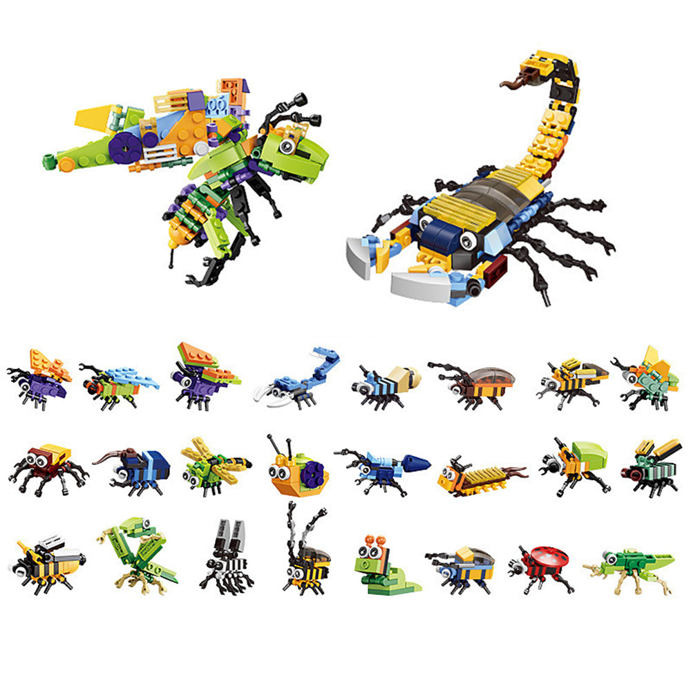 Kids will open one door a day for 24 days to discover something that will delight them 12 in 1 unique design, 12 building blocks each series can combine into a big insect or dinosaur