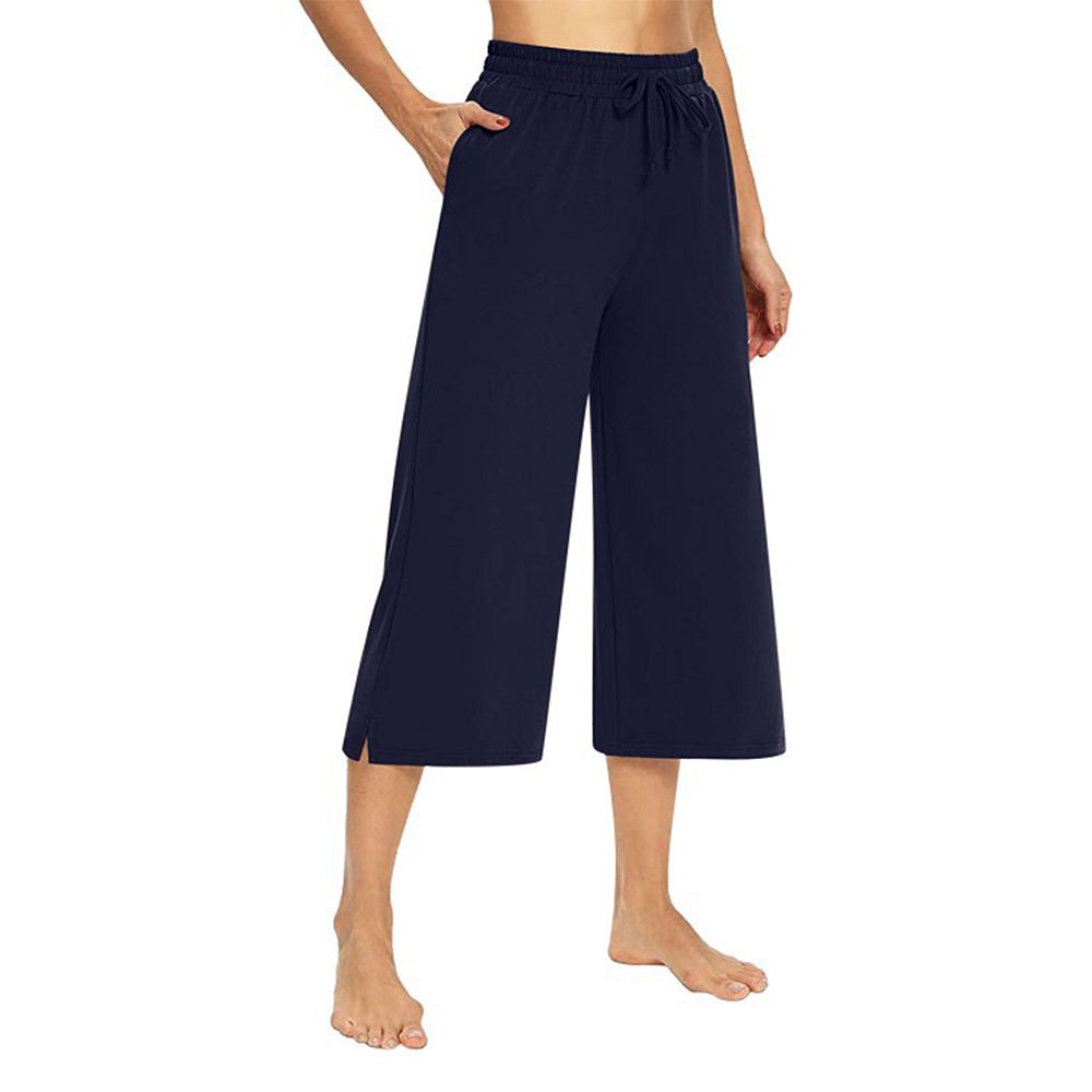 Women's Capri Pants Wide Leg Drawstring Loose Cropped Yoga Pants