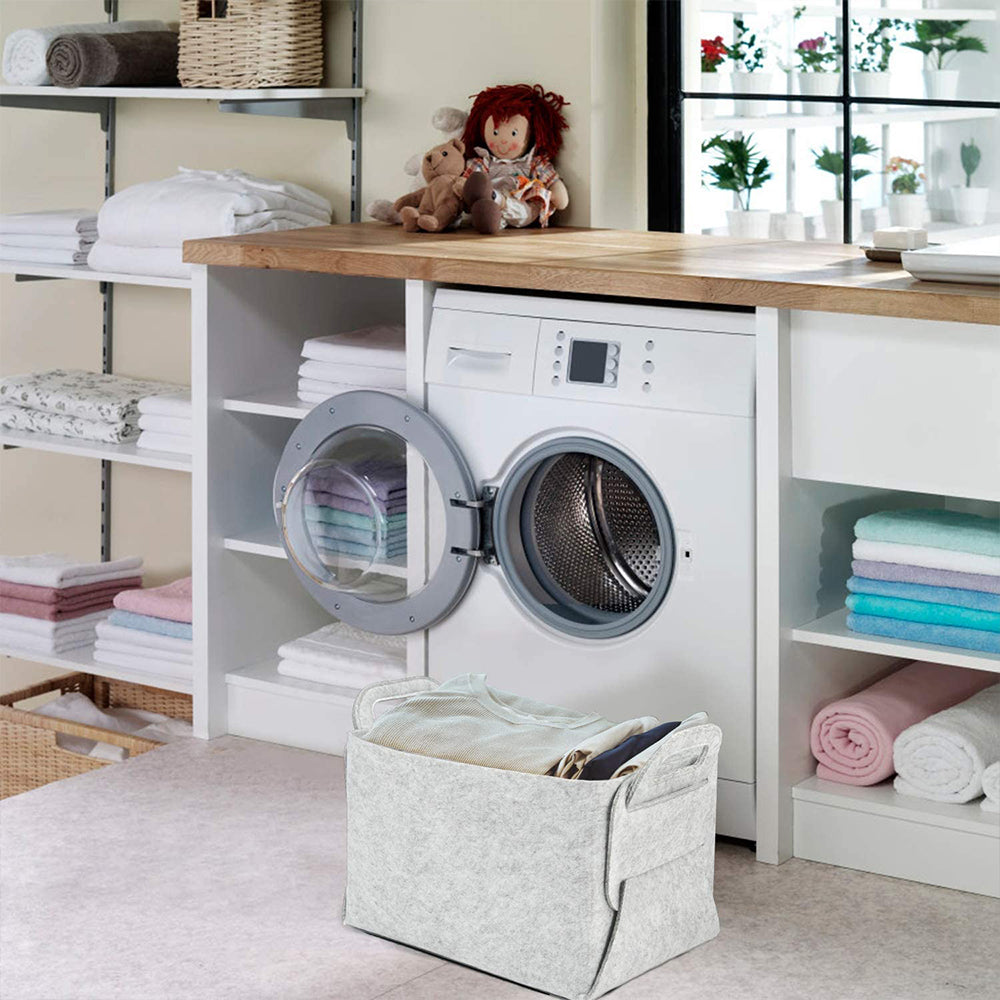 2Pcs Collapsible Felt Storage Bin Storage Basket with Carry Handles