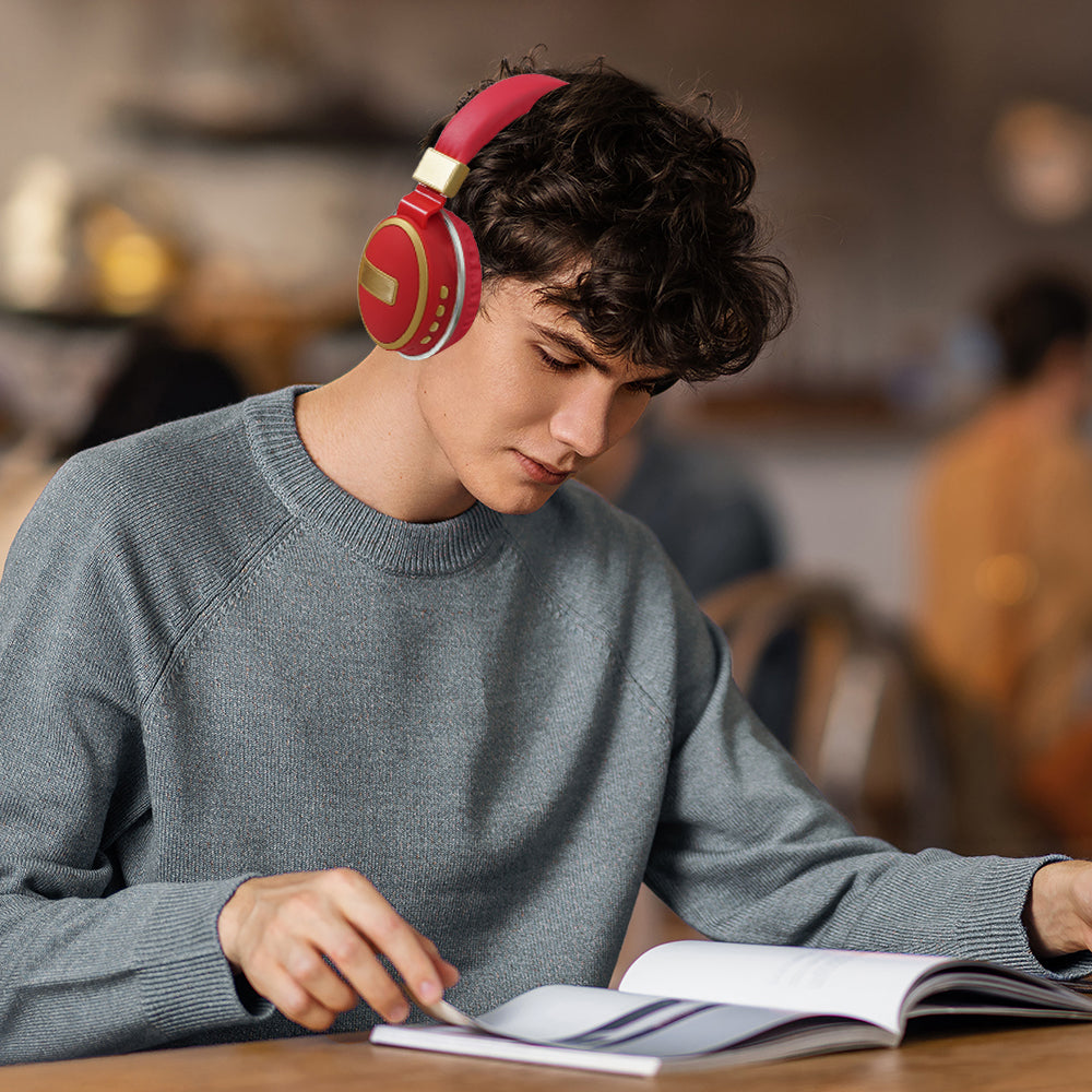 Description: These bluetooth headphones have a built-in microphone and can be used for answering the phone, online classes or streaming.