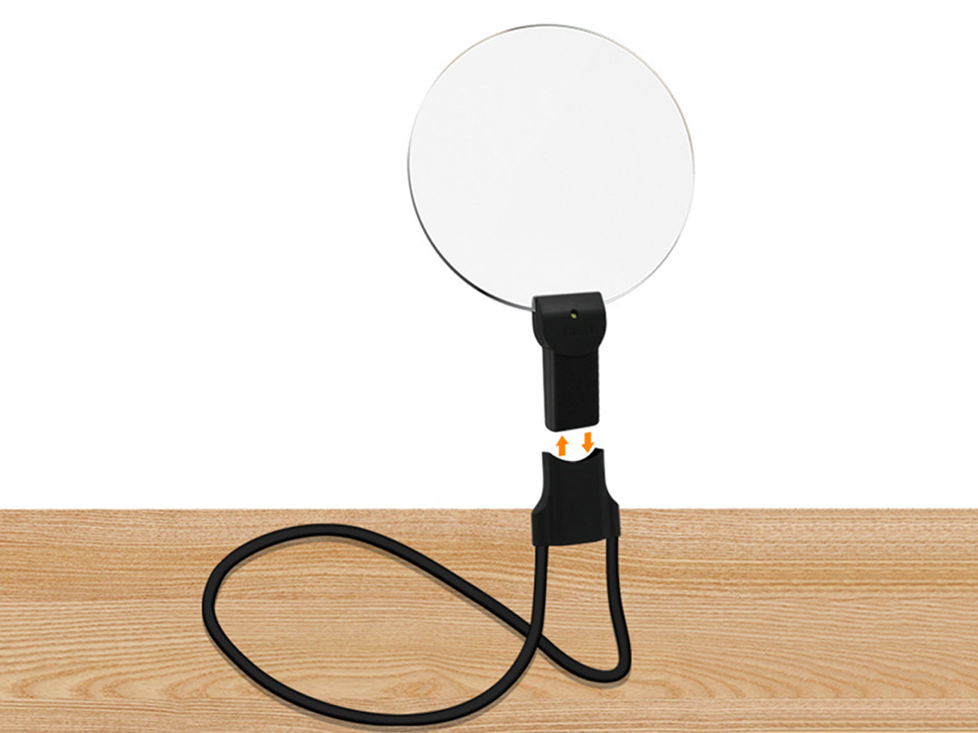The flexible gooseneck design allows you to keep your hands free. It can be hung around your neck, adjusted to different directions and heights, or placed on a table for convenience.
