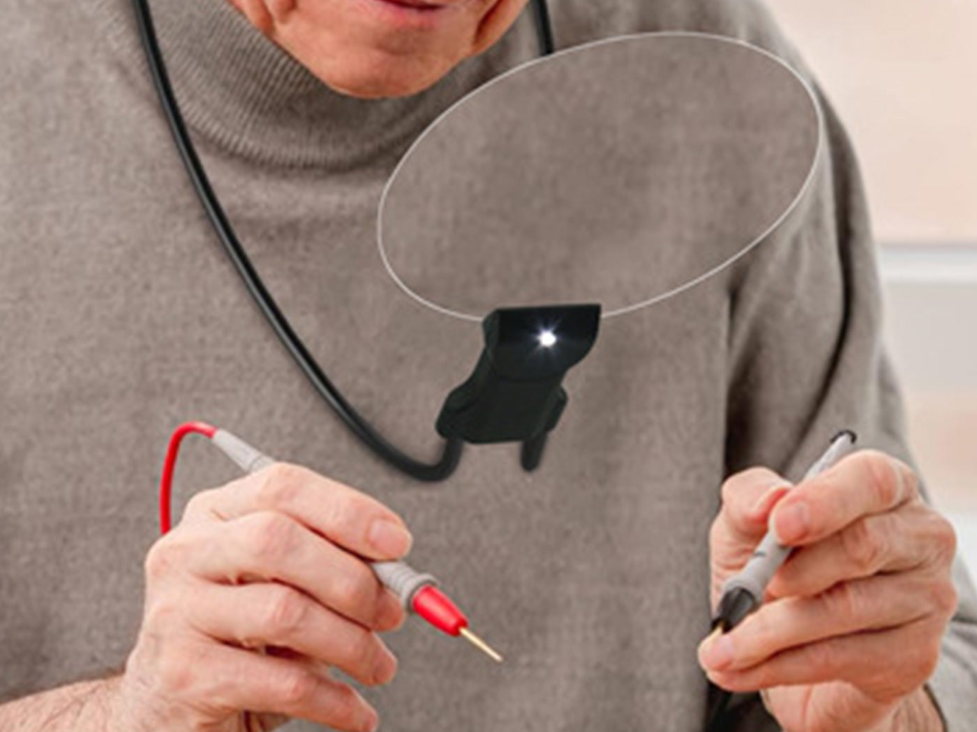 This wearable magnifying glass with light has a soft, adjustable hose.