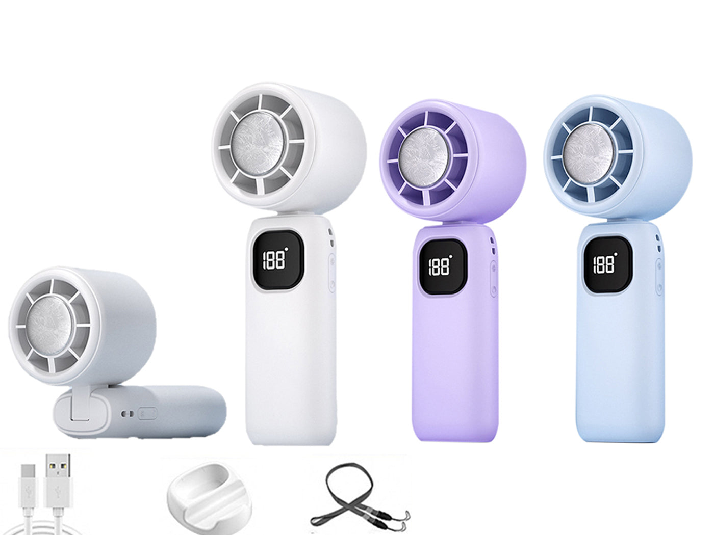 100 Speeds Digital Display Cooling Fan USB Fan with Lanyard and Phone Holder Base
