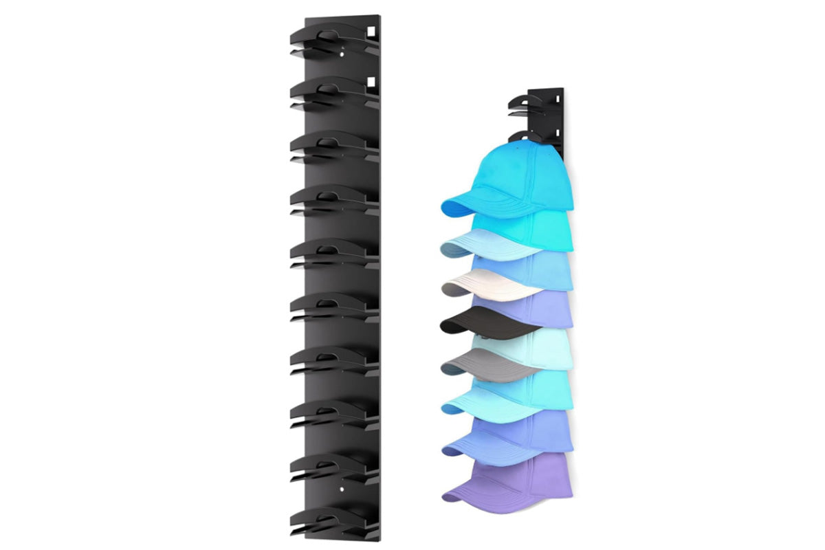 Baseball cap organizer is a practical wall-mounted storage solution designed for hanging hats and other accessories.