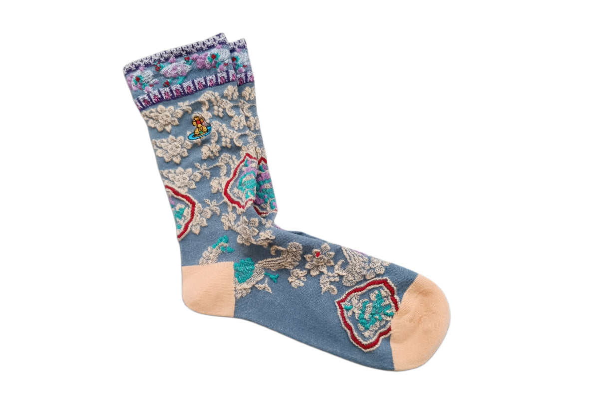 Each pair features intricate embroidered patterns that pop with rich, harmonious colors, every detail vivid and textured, turning these socks into wearable art.