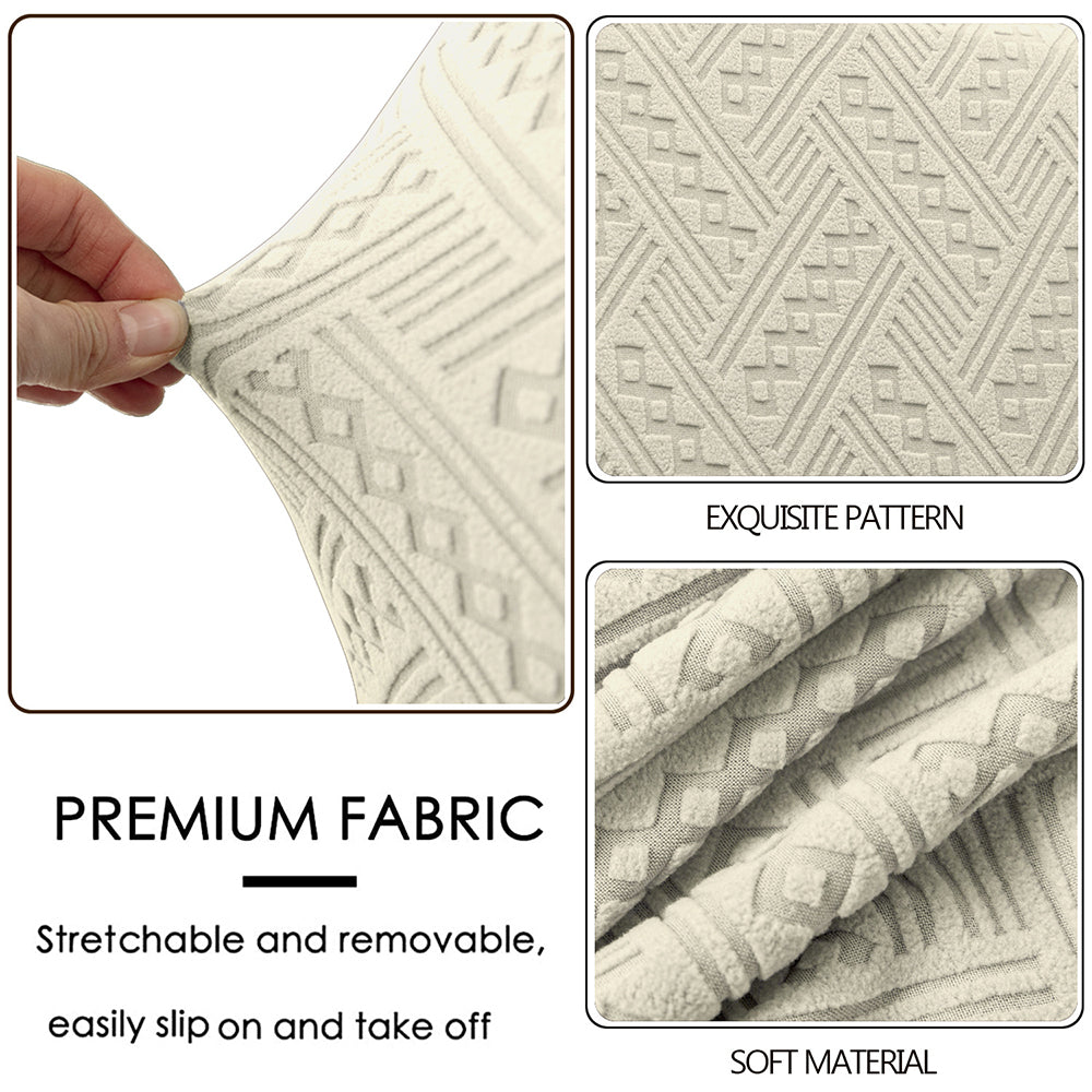 Stretchable, removable dining chair cover that fits most standard chairs, offering full protection and a refreshed look. Chairs not included.