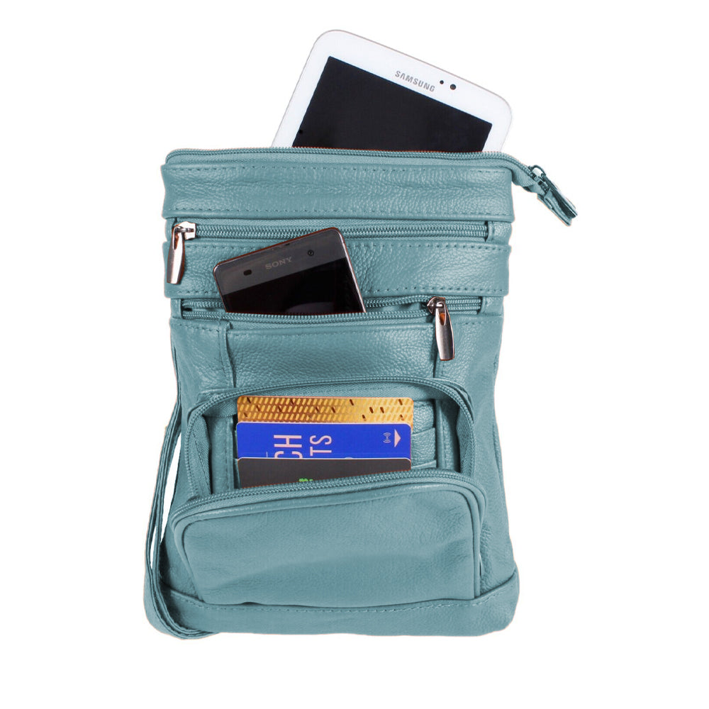 Womens Genuine Leather Multi-Pocket Crossbody Purse Bag